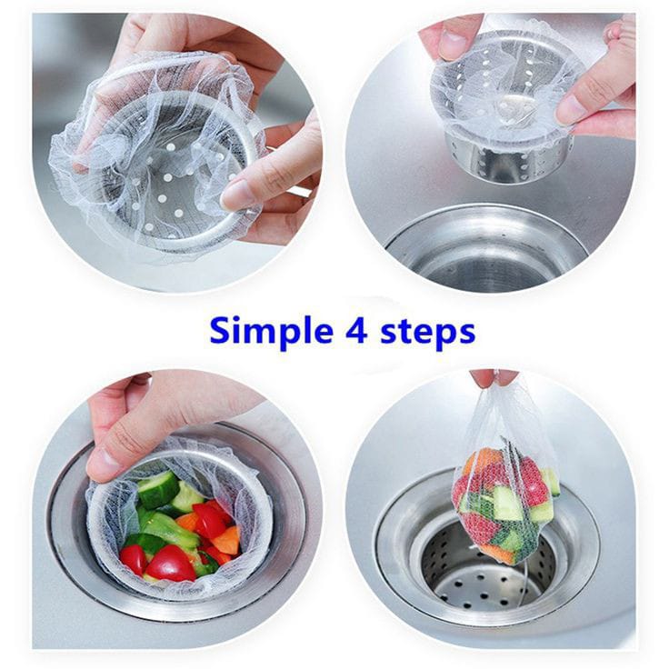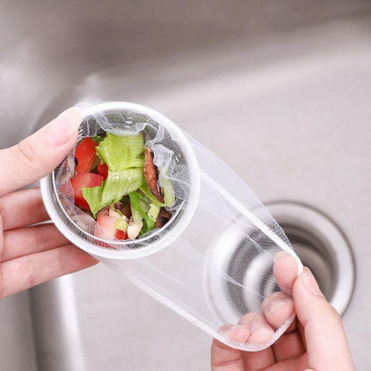 ✅ للحوض: بعد كل وجبة، الأكياس هتجمع كل بقايا الأكل الصغيرة اللي ممكن تسد الحوض وتسبب ريحة مش حلوة. كل اللي عليكي، شدي الكيس وارميه، من غير ما تمسكي حاجة بإيدك.