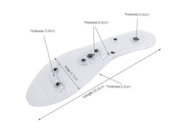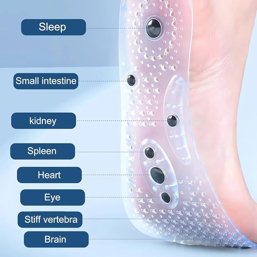 نقاط مغناطيسية تحفز نقط الوجع في باطن الرجل عشان يقلل الاحساس بالالم من اول استخدام