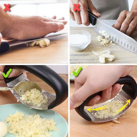 هراسة مصنوعة من الإستانلس ستيل تستخدم لهرس الثوم والجزر والسوسيس والبيض وحاجات تانية كتير
